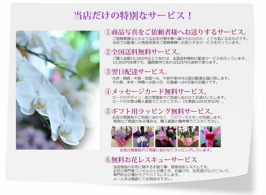 福岡、花屋フォレスト/キャンセル・返品・交換につきまして 福岡、花屋フォレスト/無料サービスにつきまして