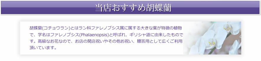 開店・開業・移転祝いなどあらゆるお祝い事から仏事まで、 オールマイティにカバーできる胡蝶蘭を